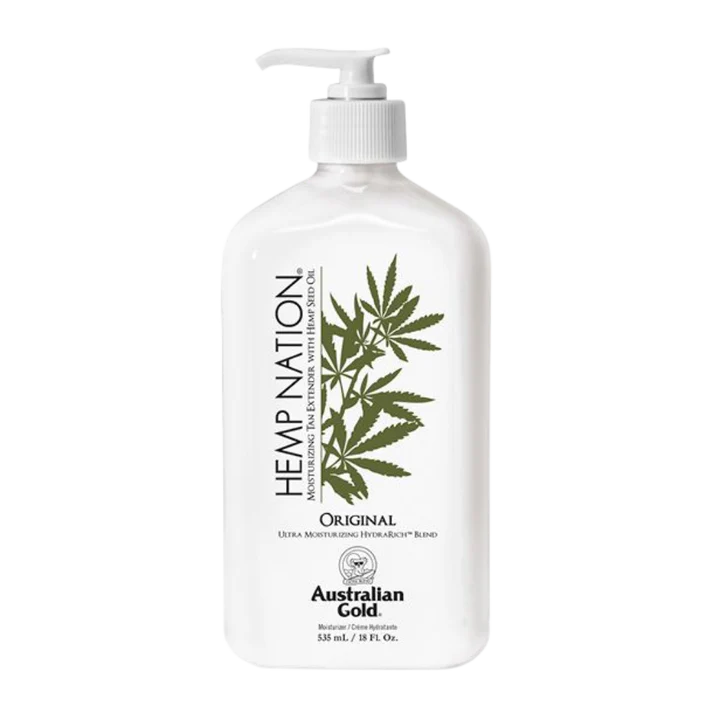 Den originale Hemp Nation Tan Extender Lotion med hampefrø olie er spækket med nærende ingredienser, der efterlader huden silkeblød og forlænger den solbrune kulør.