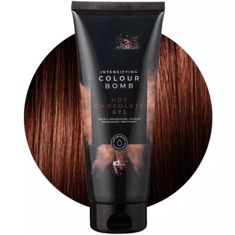 IDHair Colour Bomb – 673 Hot Chocolate er en super smuk farvebombe, som giver dig mulighed for at genopfriske din hårfarve, samtidig med at den leverer en masse pleje og glans til dit hår.